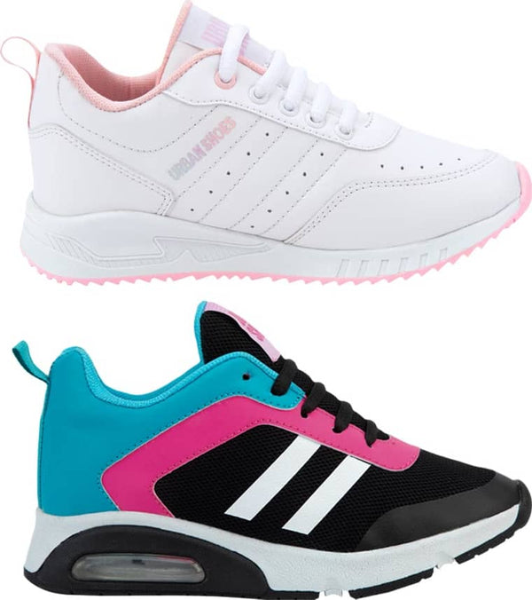 Kit 2 pares choclo tenis casual urbano para niña color multicolor marca Urban Shoes modelo 1004
