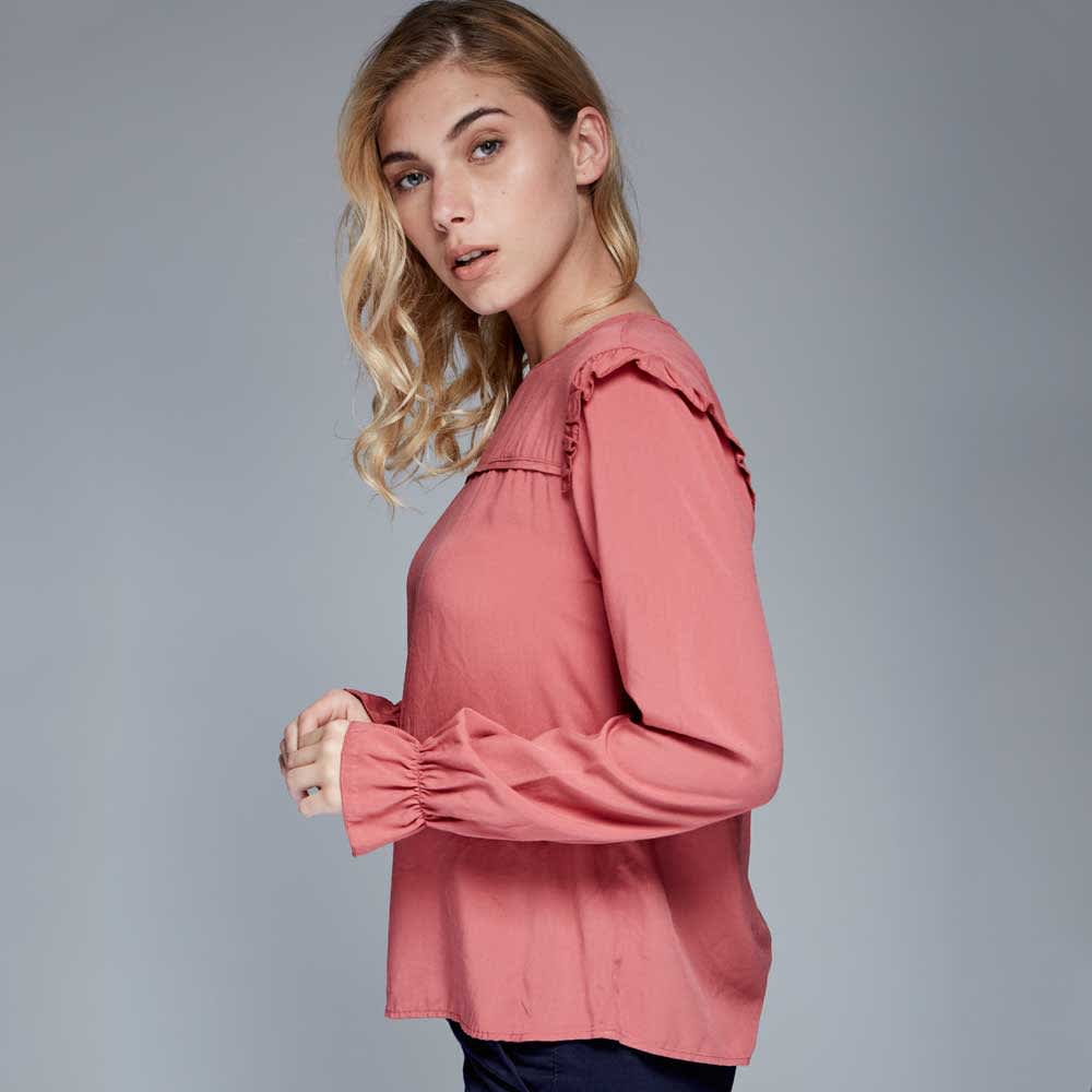Bluson casual para dama color amarillo mostaza marca Holly Land modelo BRUN