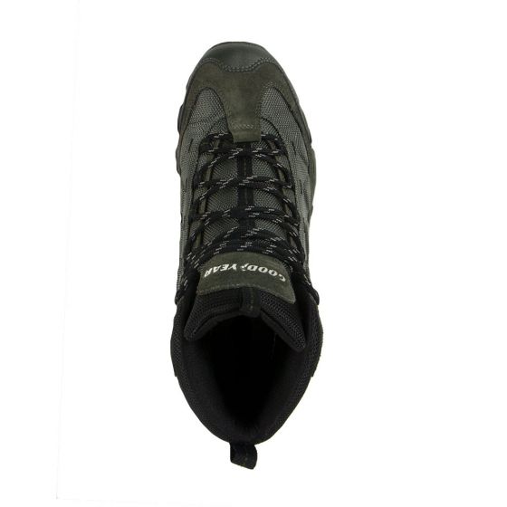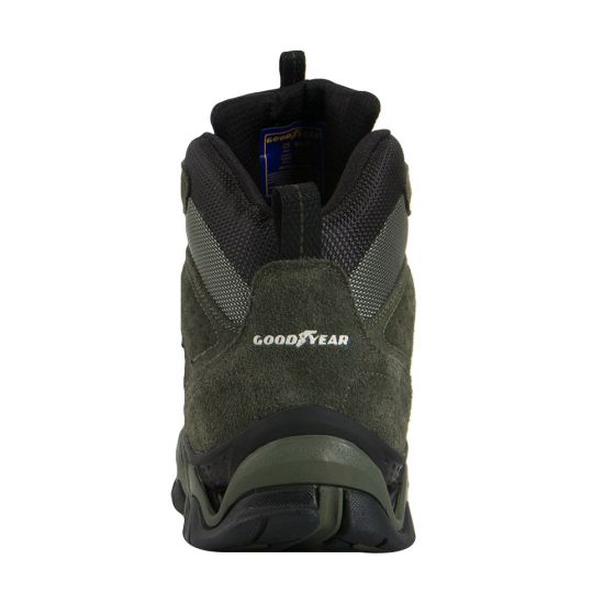 Botas tipo hiker todo terreno marca Goodyear para hombre color verde olivo con suela antiderrapante y punta reforzada. Ideal para situaciones todo terreno, montañismo y hiking.